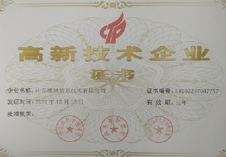 山東驟風(fēng)信息技術(shù)有限公司,于2022年12月通過了高新技術(shù)企業(yè)認(rèn)證!